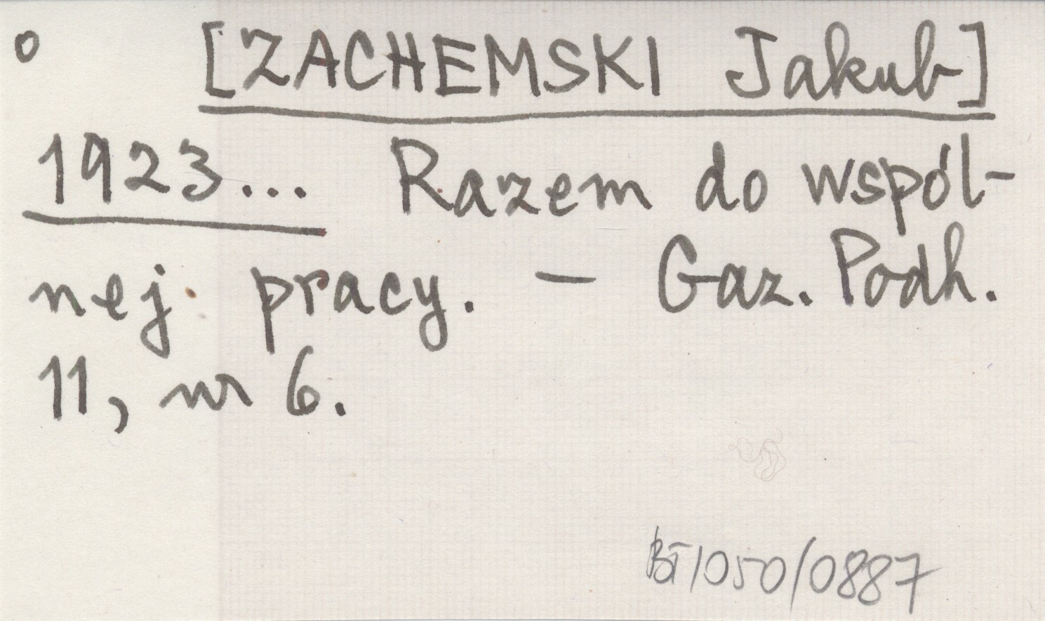 [ZACHEMSKI Jakub] 1923... Razem do wspólnej pracy.