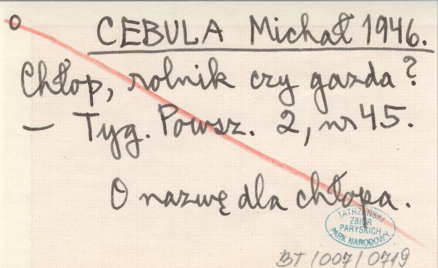 Tygodnik Powszechny, 2, nr 45. O nazwę dla chłopa.
