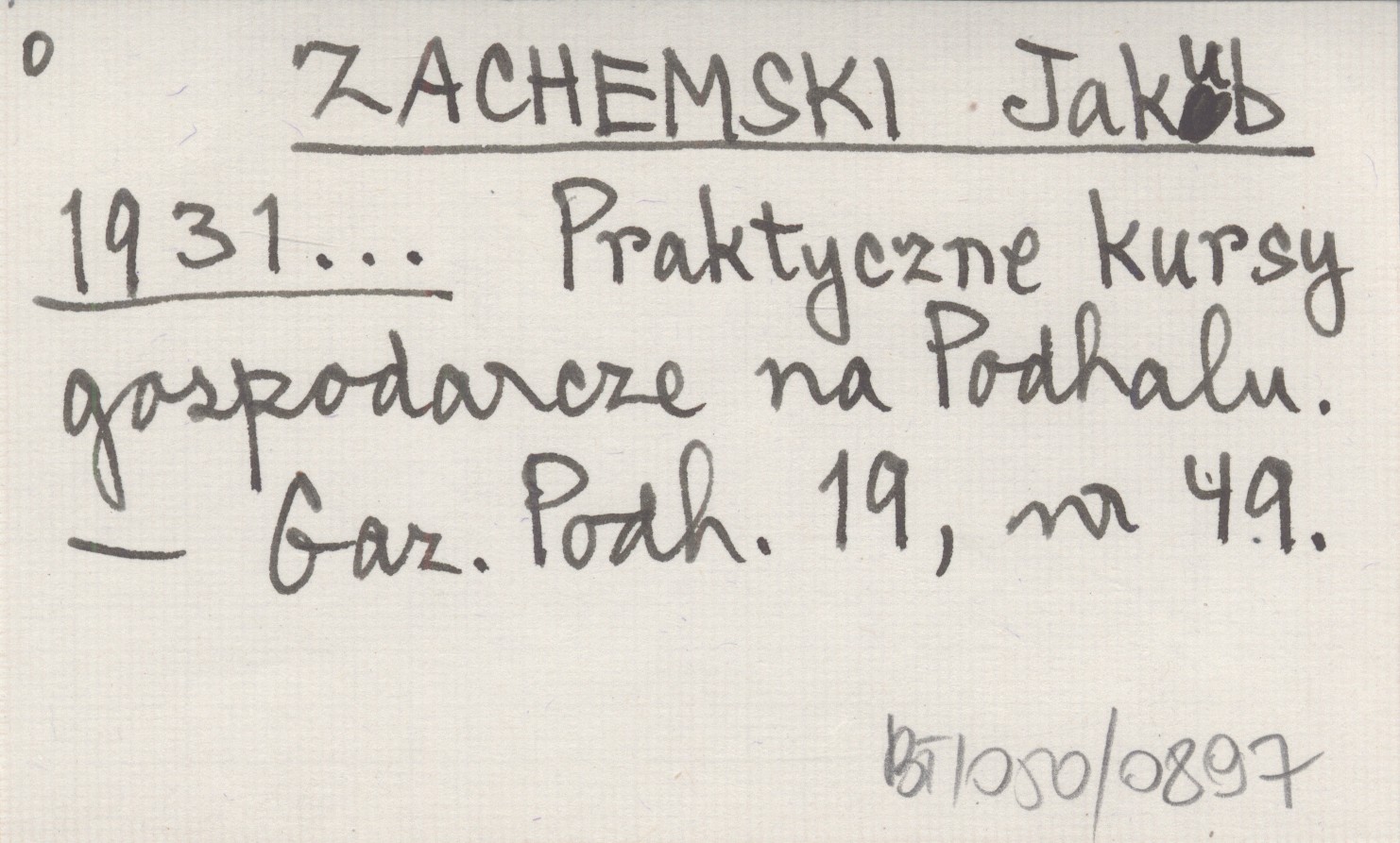 ZACHEMSKI Jakub 1931... Praktyczne kursy gospodarcze na Podhalu.