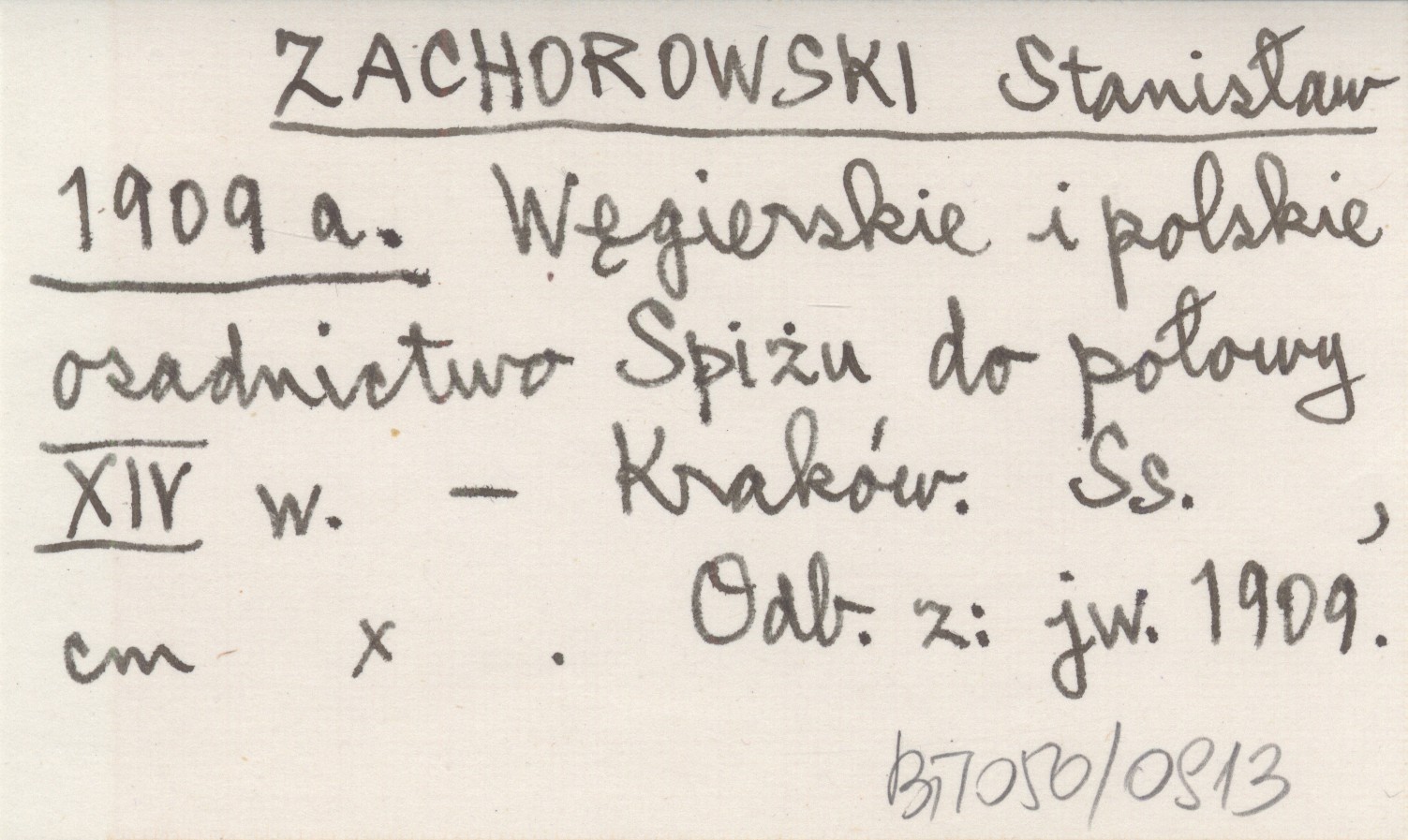 ZACHOROWSKI Stanisław 1909 a Węgierskie i polskie osadnictwo Spiżu do połowy XVI w.