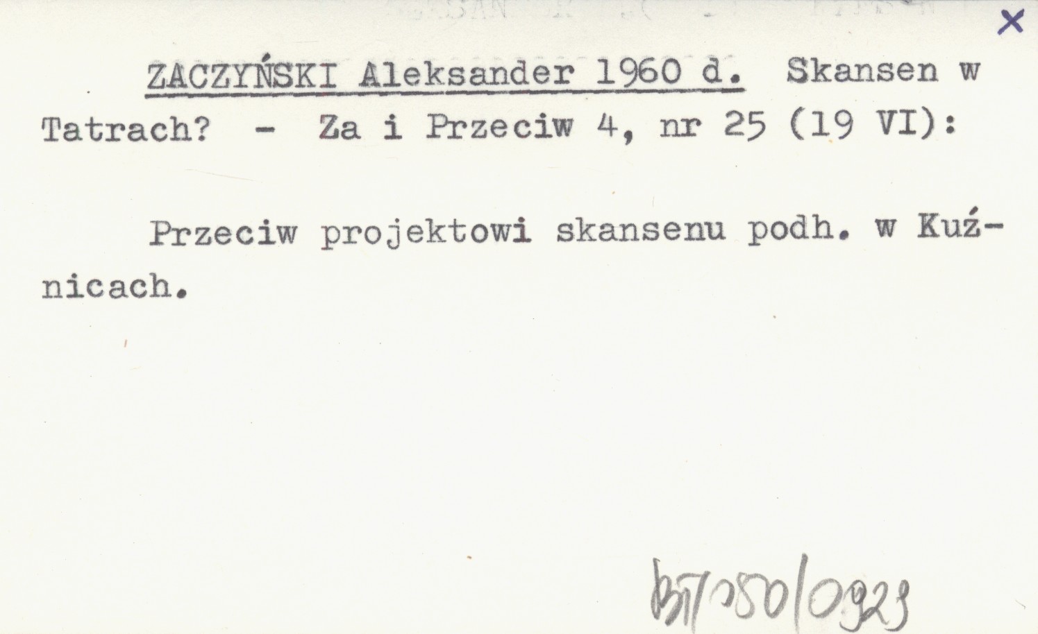 Za i Przeciw, 4, nr 25 (19 VI). Przeciw projektowi skansenu podhalańskiego w Kuźnicach.