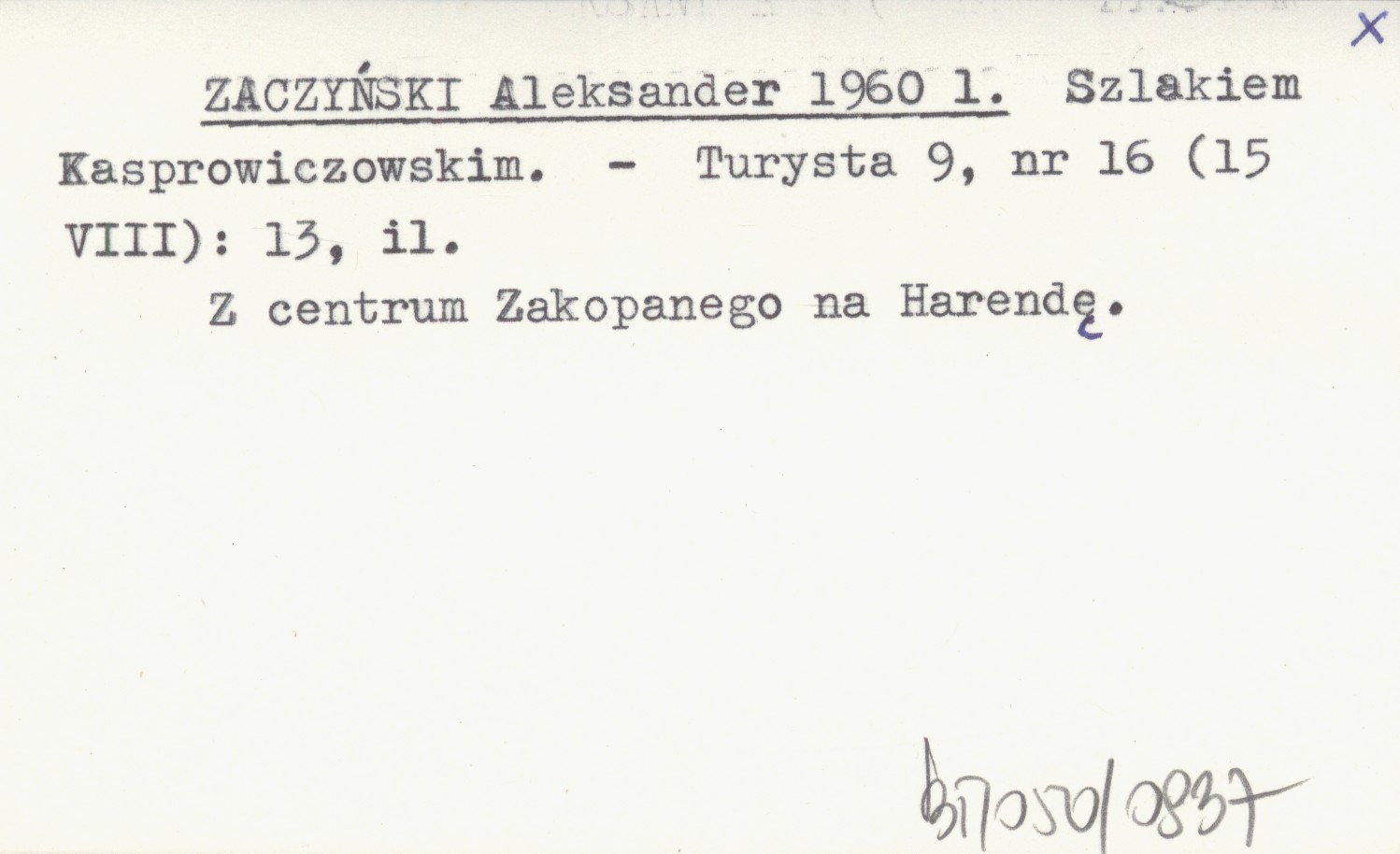 ZACZYŃSKI Aleksander 1960 l Szlakiem Kasprowiczowskim.