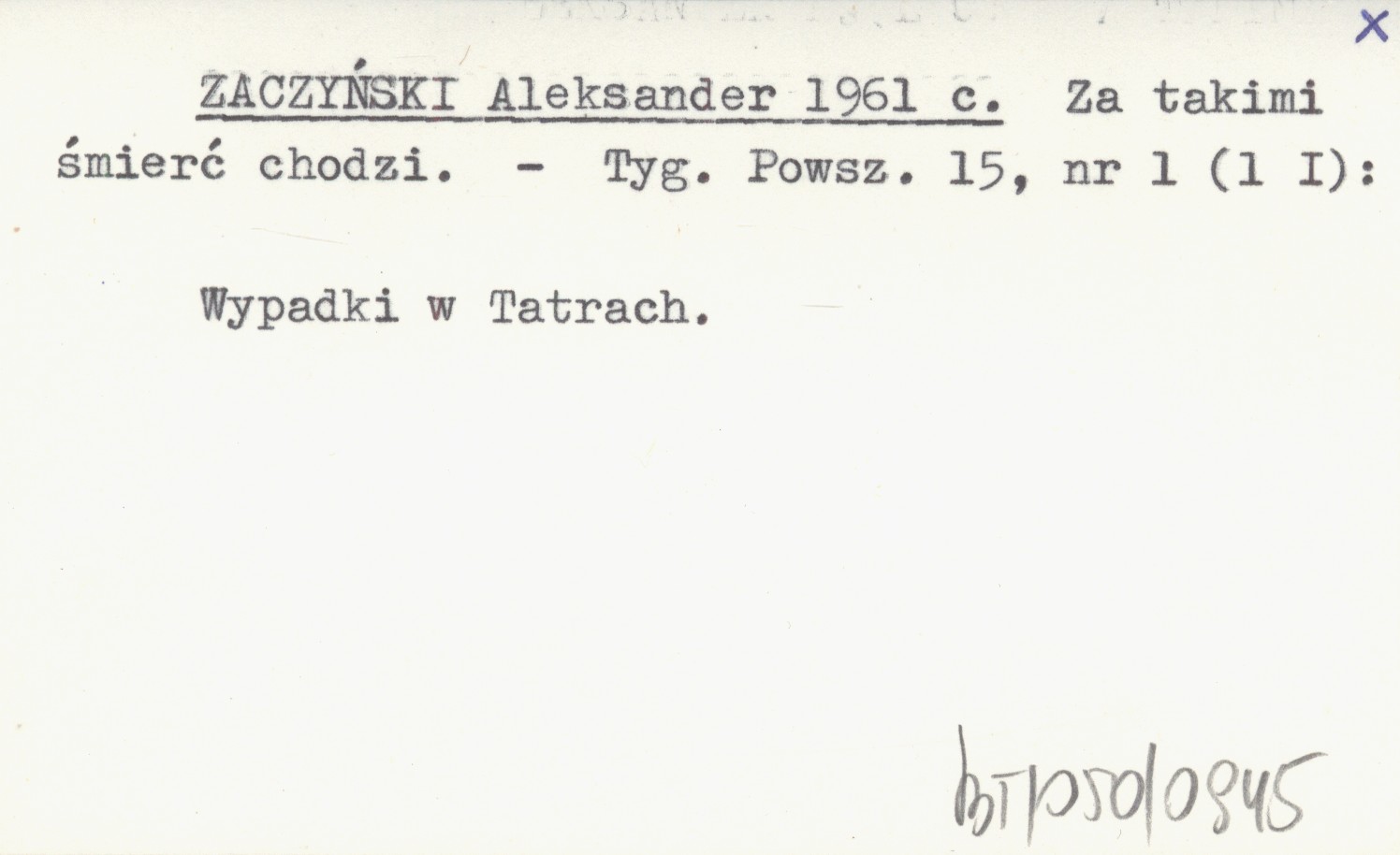 ZACZYŃSKI Aleksander 1961 c Za takimi śmierć chodzi.