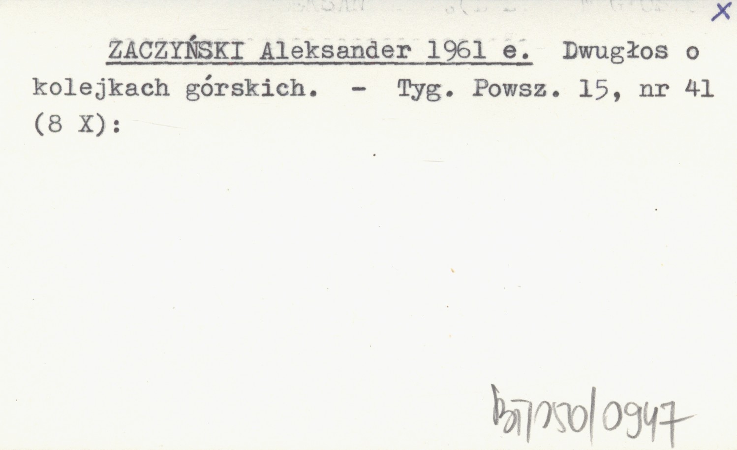 ZACZYŃSKI Aleksander 1961 e Dwugłos o kolejkach górskich.