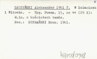 ZACZYŃSKI Aleksander 1961 f W Dzianiszu i Witowie.