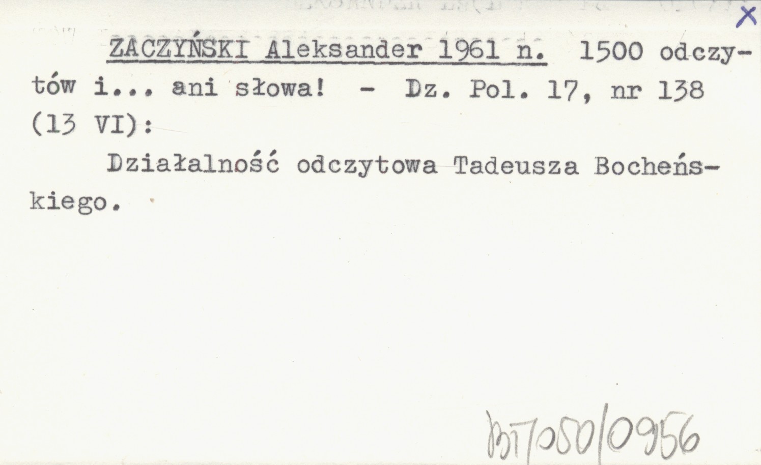 ZACZYŃSKI Aleksander 1961 n 1500 odczytów i ... ani słowa!