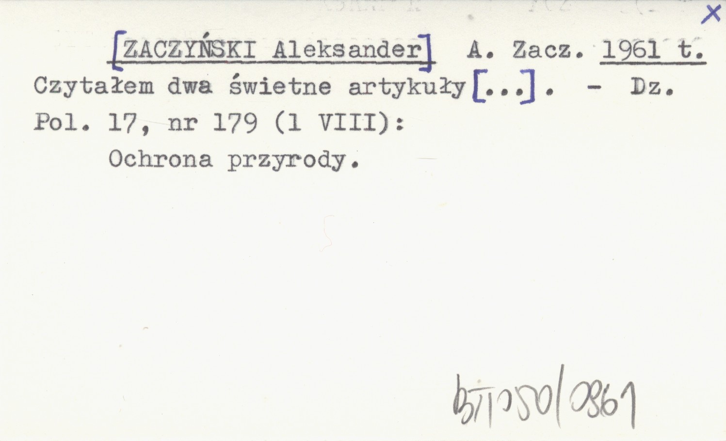 A. Zacz, [ZACZYŃSKI Aleksander] 1961 t Czytałem dwa świetne artykuły [...].