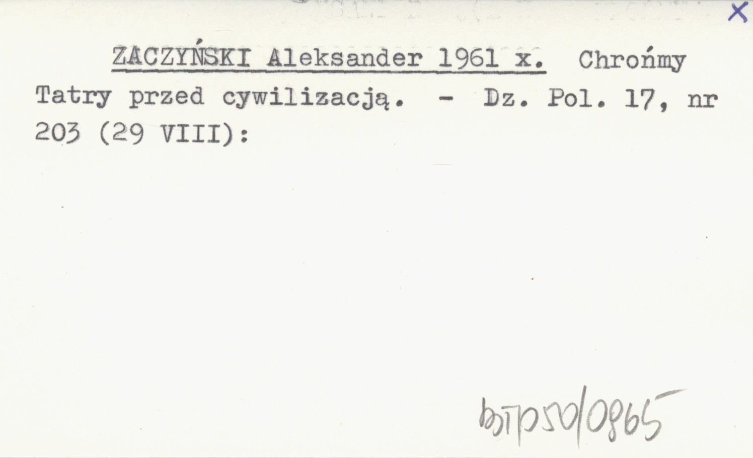 ZACZYŃSKI Aleksander 1961 x Chrońmy Tatry przed cywilizacją.