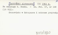 (zacz) [ZACZYŃSKI Aleksander] 1961 w Na Harendzie.