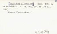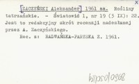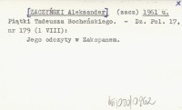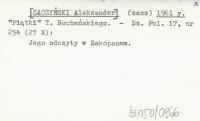 (zacz) [ZACZYŃSKI Aleksander] 1961 u Piątki Tadeusza Bocheńskiego.