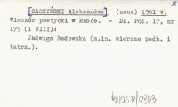 (zacz) [ZACZYŃSKI Aleksander] 1961 v Wieczór poetycki w Rabce.