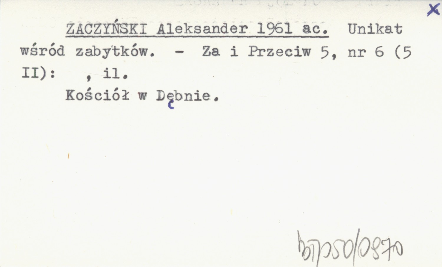 ZACZYŃSKI Aleksander 1961 ac Unikat wśród zabytków.