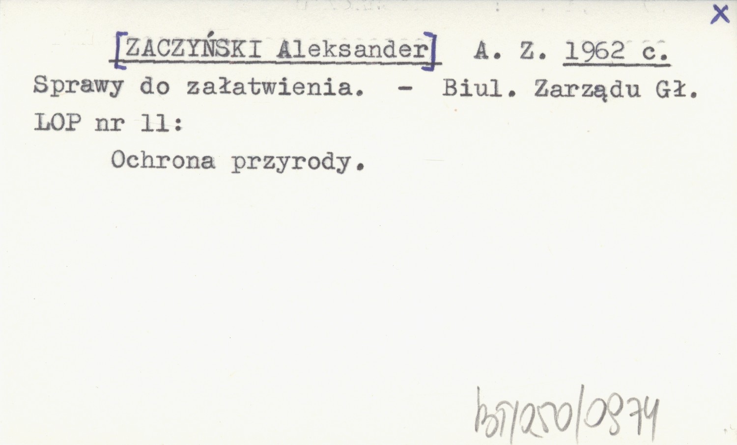 A. Z. [ZACZYŃSKI Aleksander] 1962 c Sprawy do załatwienia.