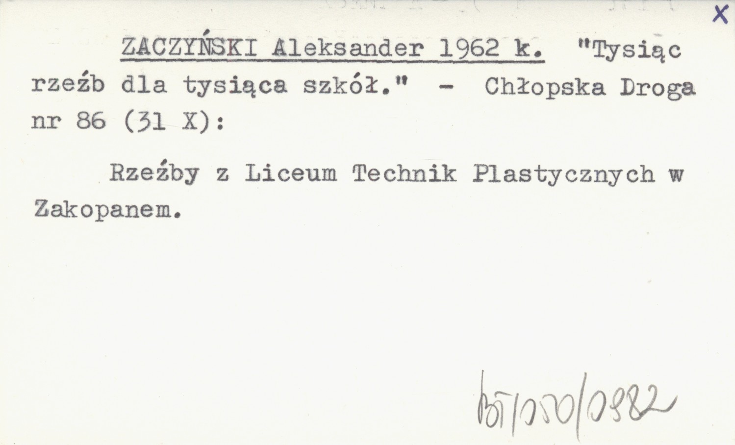 ZACZYŃSKI Aleksander 1962 k "Tysiąc rzeźb dla tysiąca szkół".