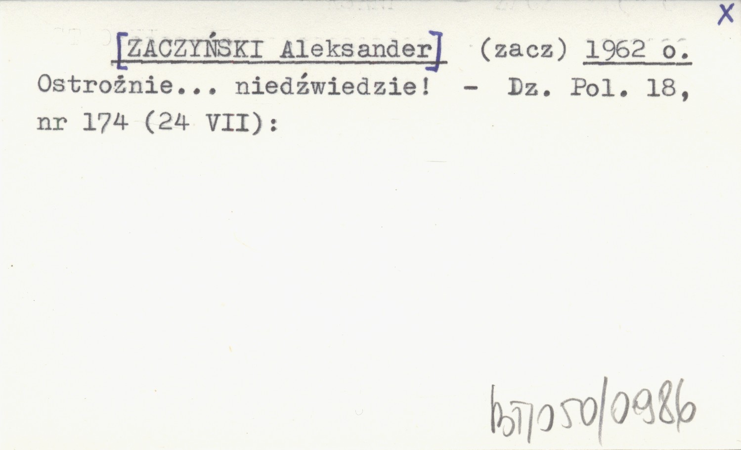 (zacz) [ZACZYŃSKI Aleksander] 1962 o Ostrożnie... niedźwiedzie!