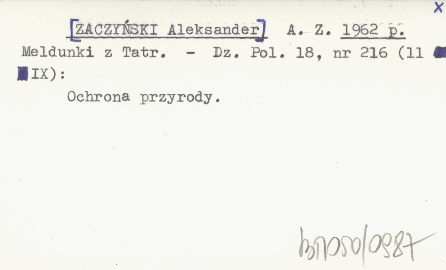 A. Z. [ZACZYŃSKI Aleksander] 1962 p Meldunki z Tatr.