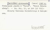A. Z. [ZACZYŃSKI Aleksander] 1962 p Meldunki z Tatr.