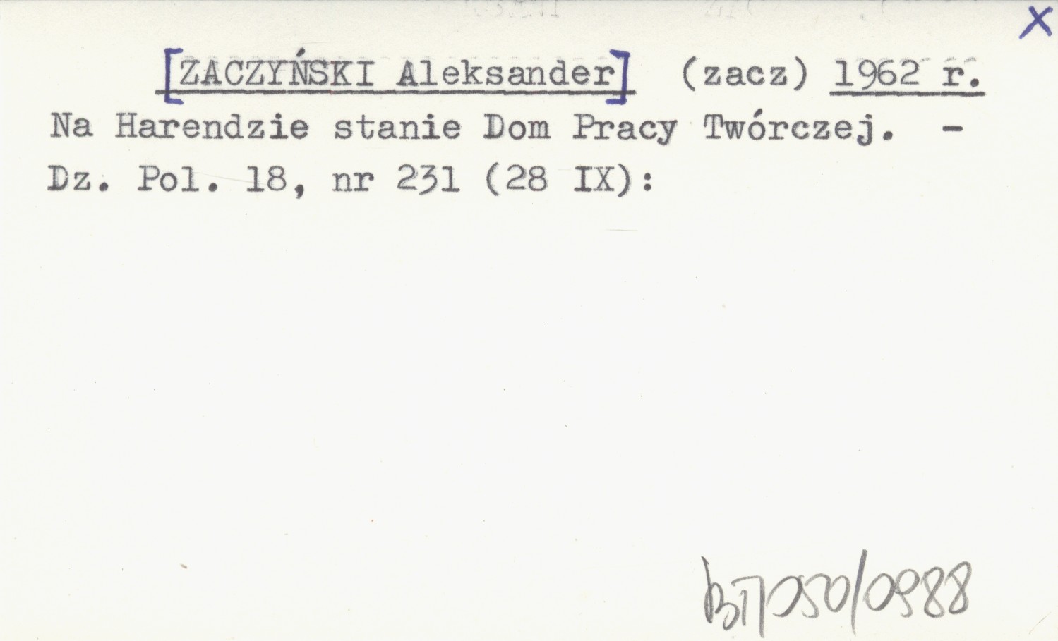 (zacz) [ZACZYŃSKI Aleksander] 1962 r Na Harendzie stanie Dom Pracy Twórczej.