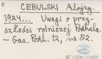 CEBULSKI Alojzy 1924... Uwagi o przyszłości rolniczej Podhala.