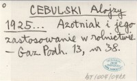 CEBULSKI Alojzy 1925... Azotniak i jego zastosowanie w rolnictwie.