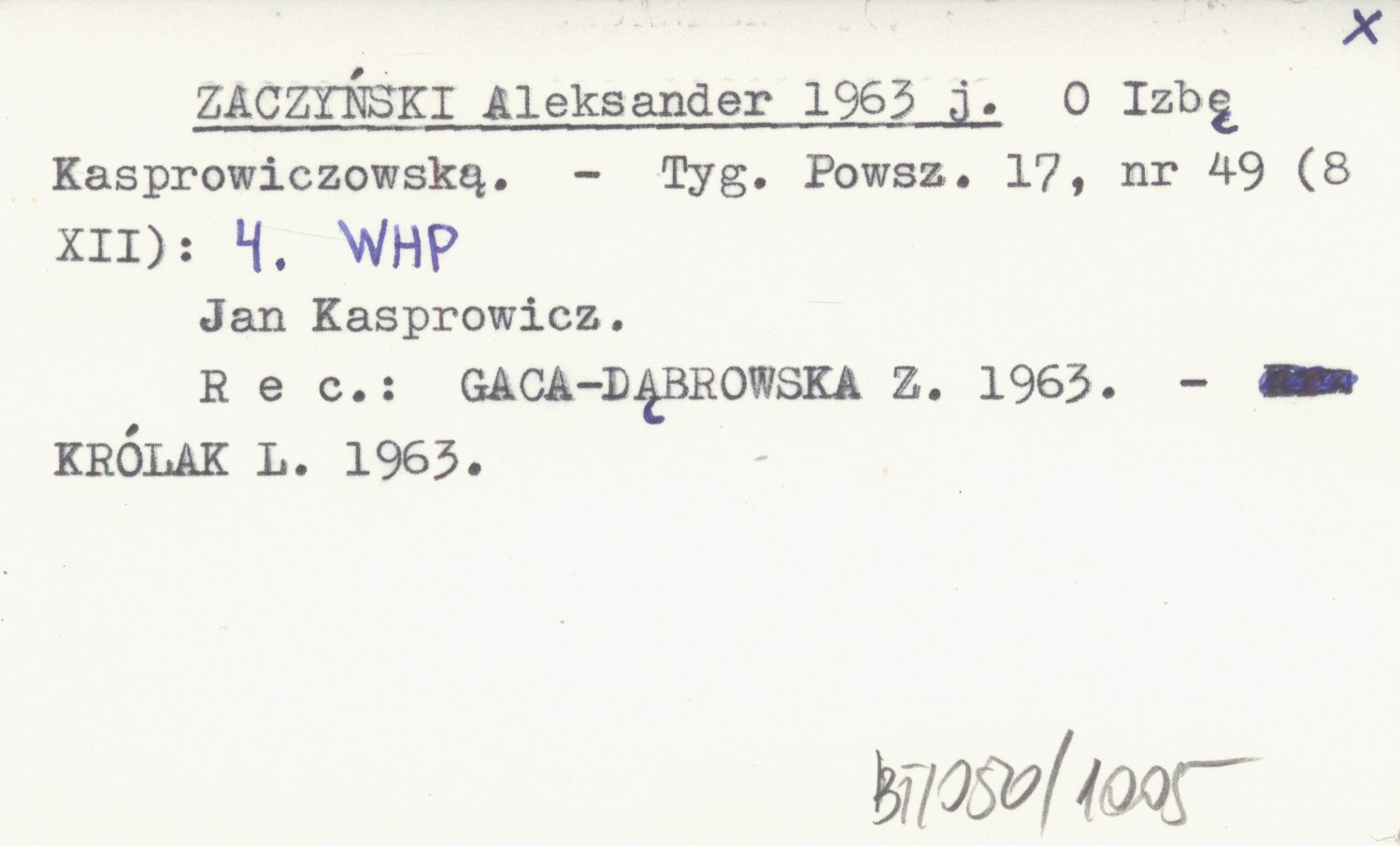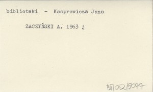 ZACZYŃSKI Aleksander 1963 j O Izbę Kasprowiczowską.