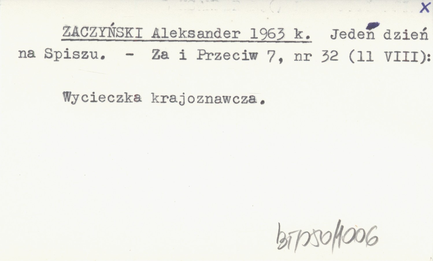 ZACZYŃSKI Aleksander 1963 k Jeden dzień na Spiszu.