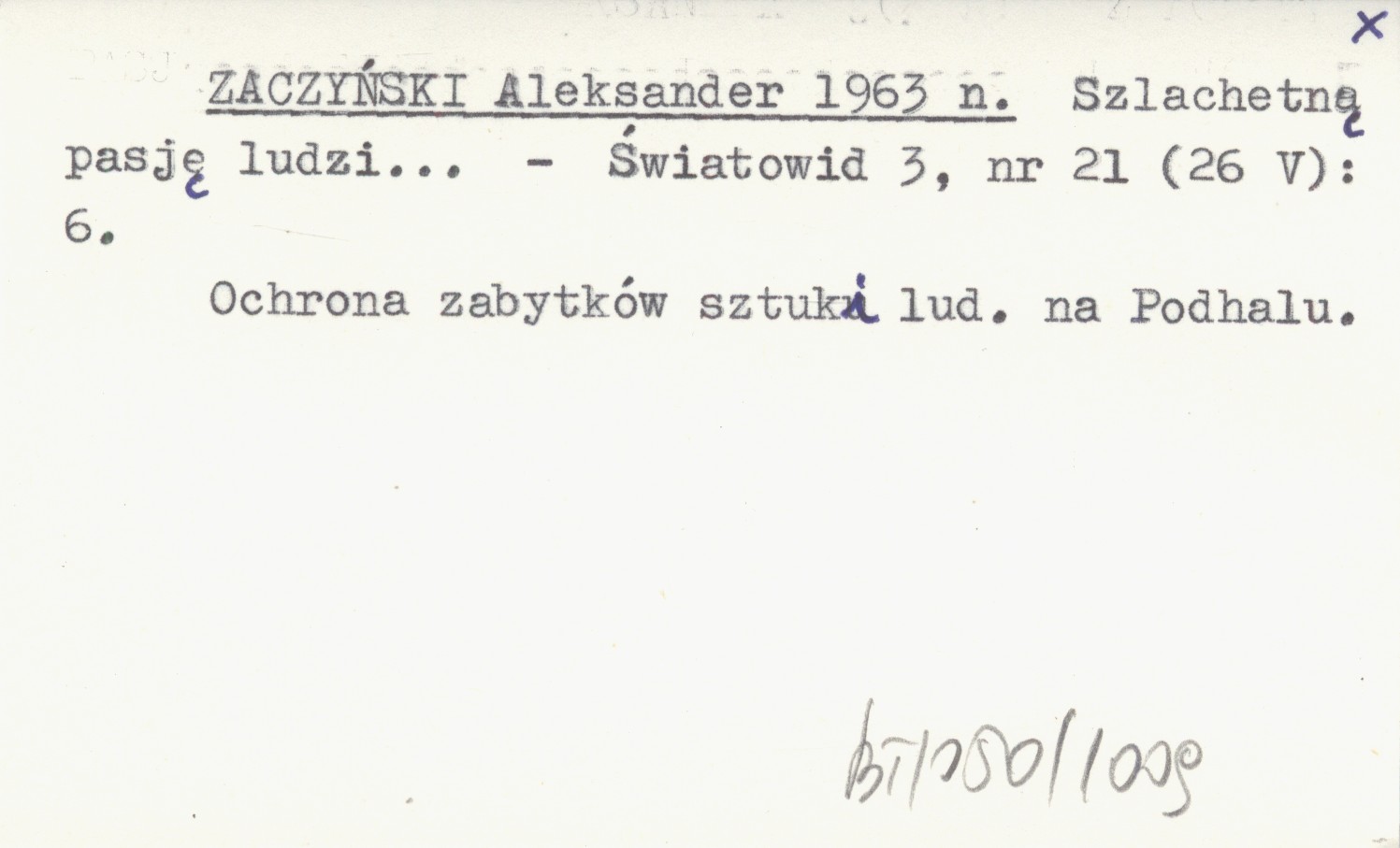 ZACZYŃSKI Aleksander 1963 n Szlachetną pasję ludzi...