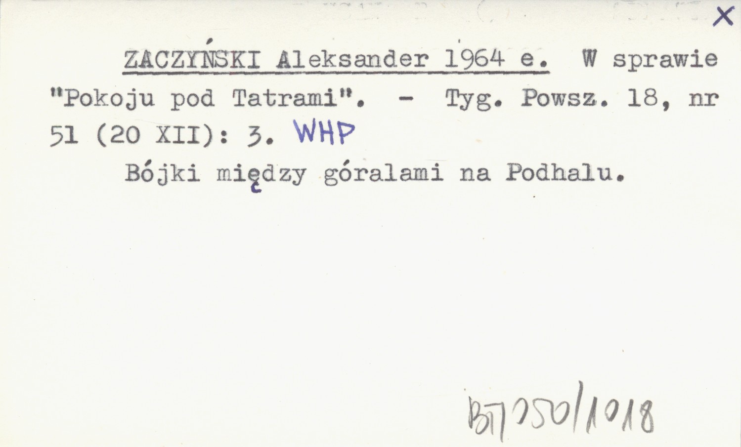 Tygodnik Powszechny, 18, nr 51 (20 XII): 3. Bójki między góralami na Podhalu.