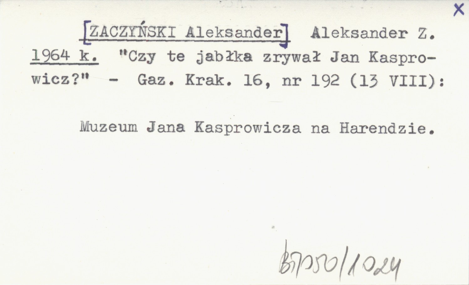 Aleksander Z. [ZACZYŃSKI Aleksander] 1964 k "Czy te jabłka zrywał Jan Kasprowicz"?