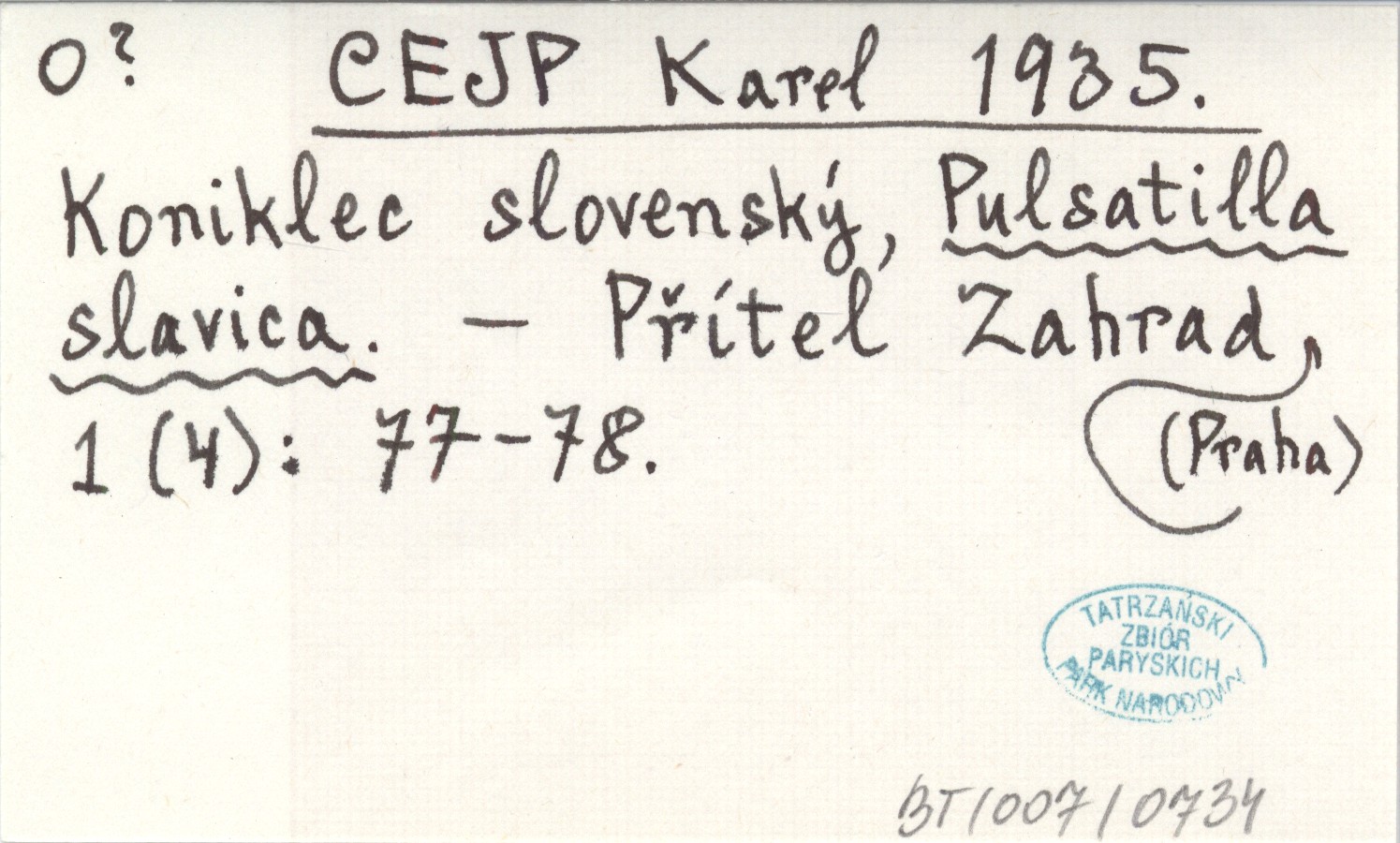 CEJP Karel 1935 Koniklec slovenský, Pulsatilla slavica.