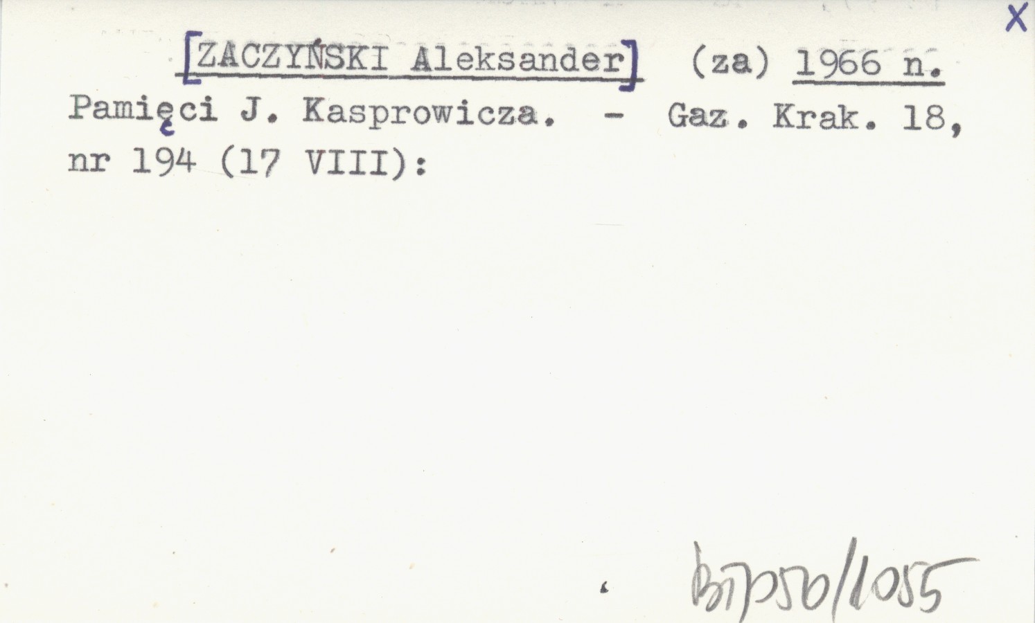 (za) [ZACZYŃSKI Aleksander] 1966 n Pamięci J. Kasprowicza.