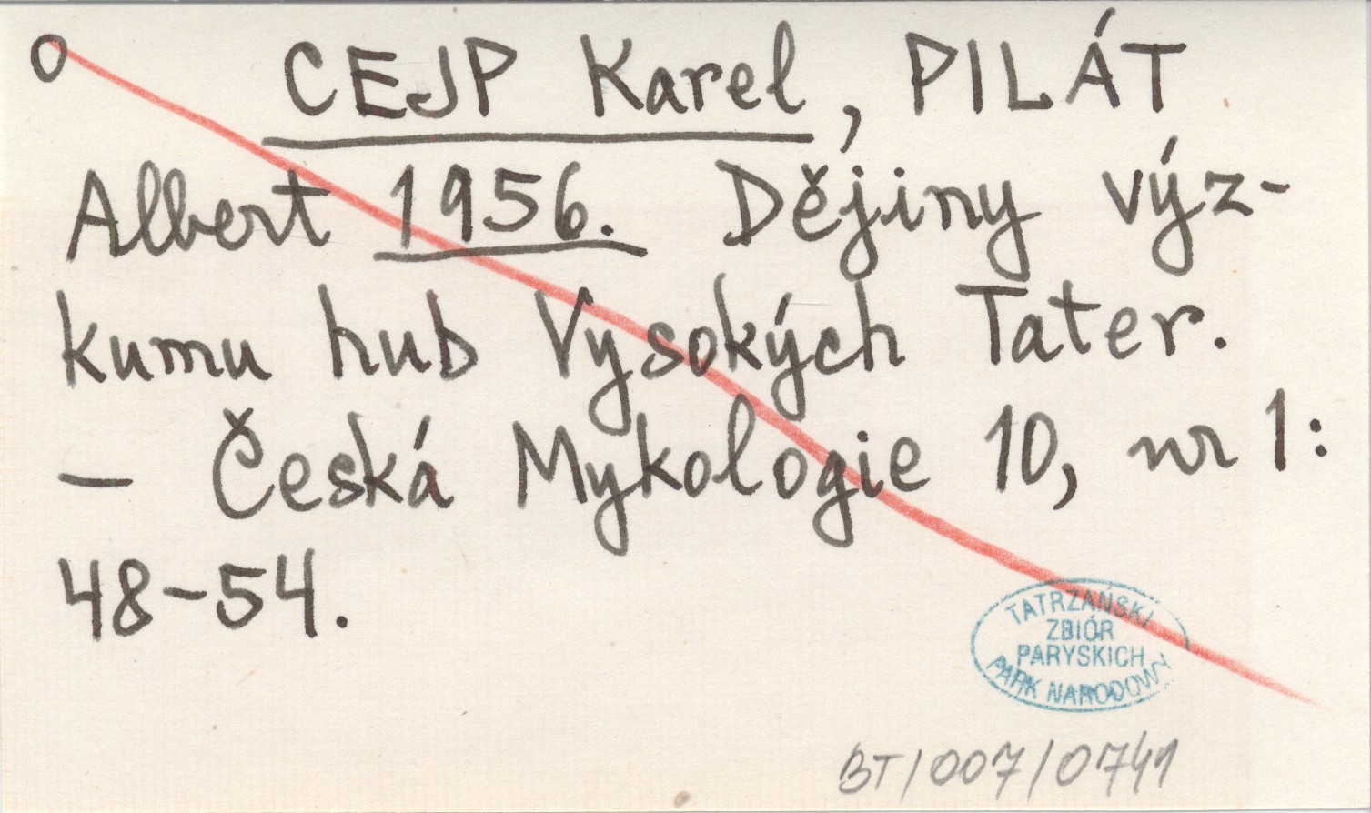 CEJP Karel PILÁT, Albert. ; 1956 Dějiny výzkumu hub Vysokých Tater.