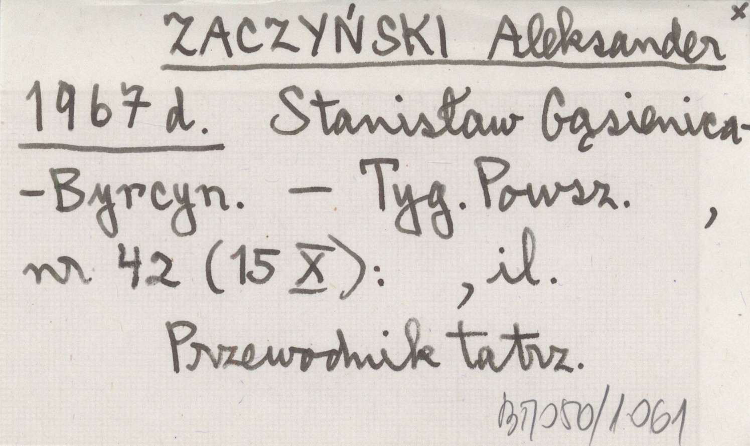 ZACZYŃSKI Aleksander 1967 d Stanisław Gąsienica-Byrcyn.