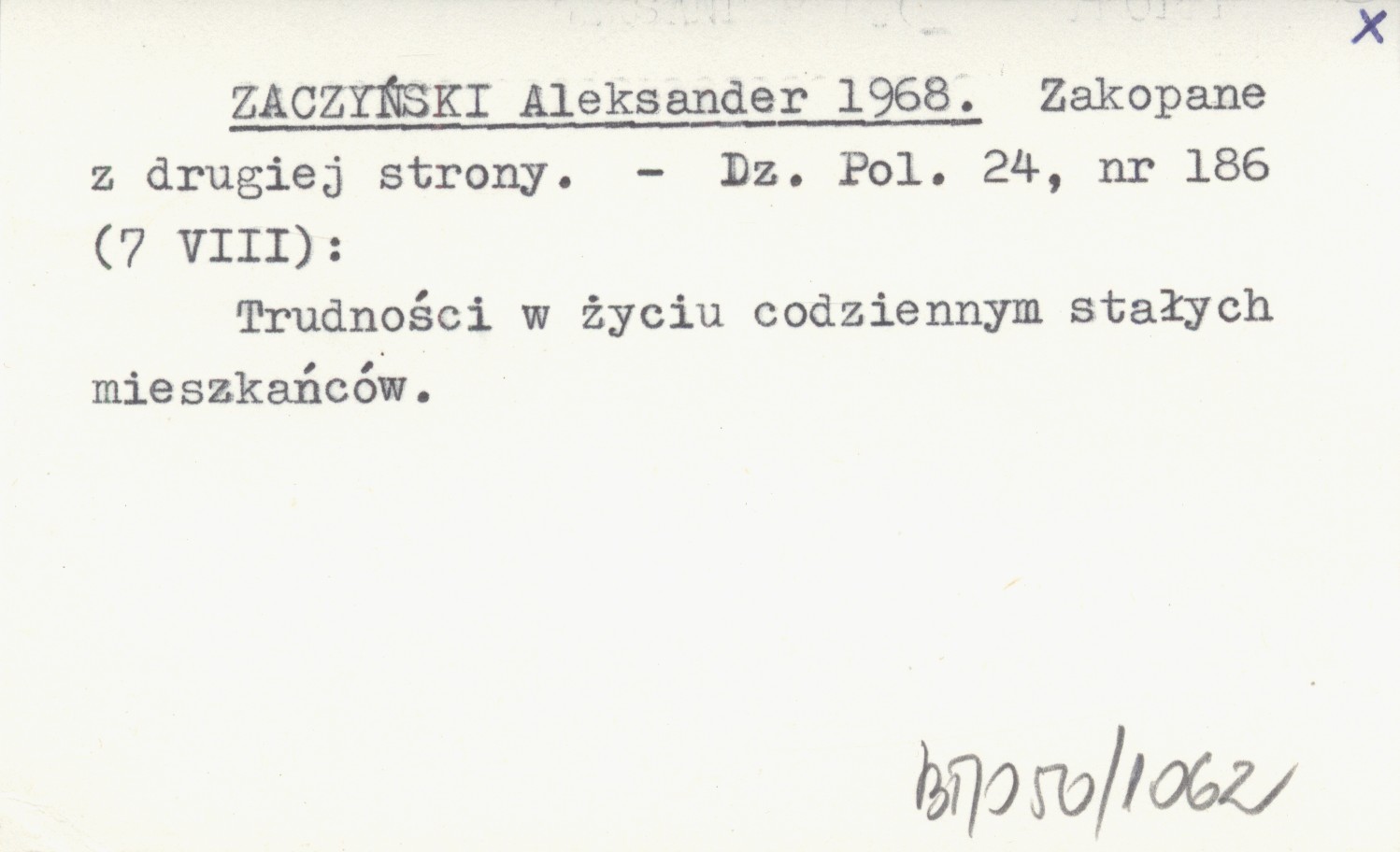 ZACZYŃSKI Aleksander 1968 Zakopane z drugiej strony.