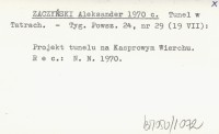 ZACZYŃSKI Aleksander 1970 c Tunel w Tatrach.
