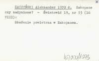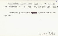 ZACZYŃSKI Aleksander 1970 d Zakopane czy zadymione?