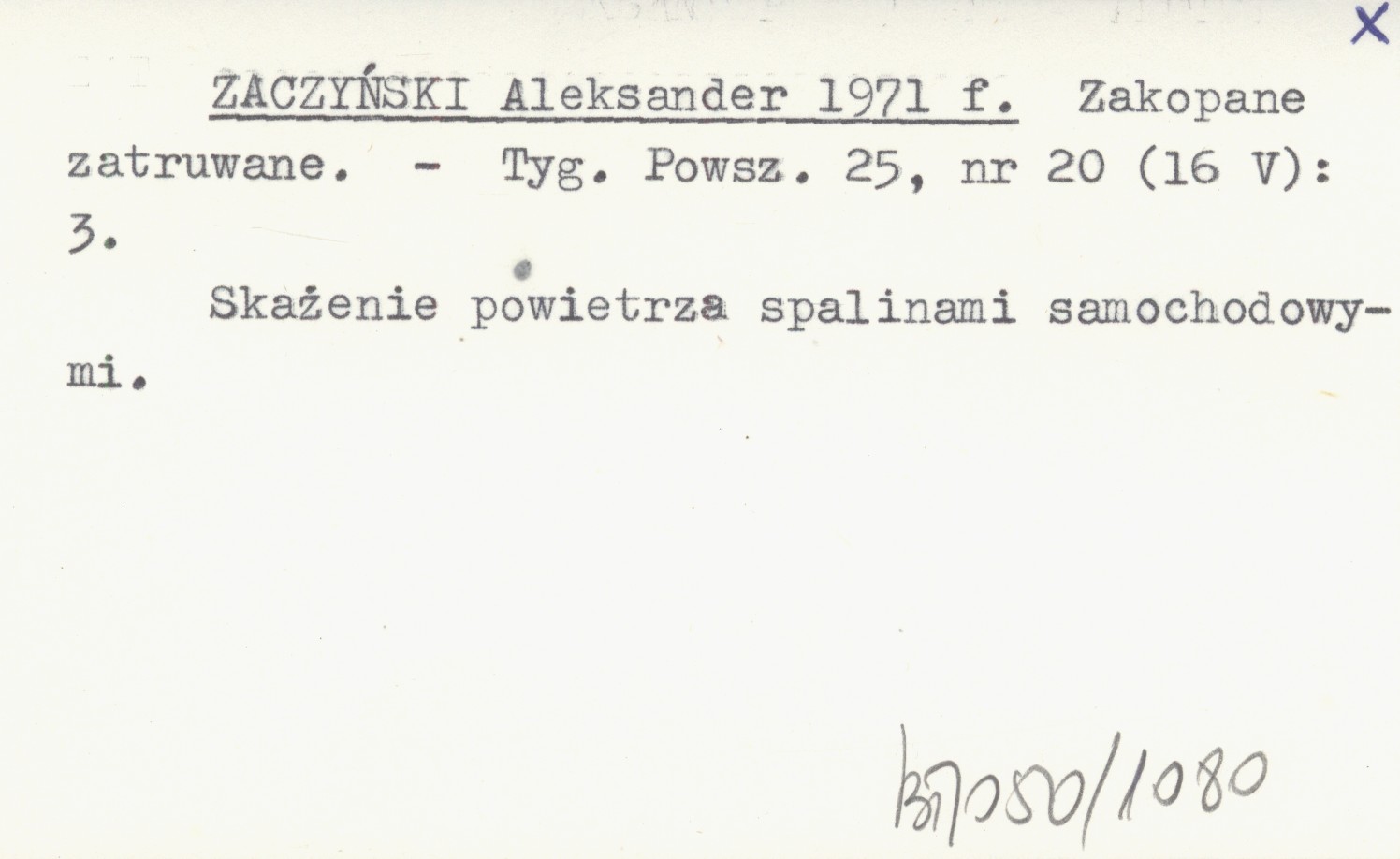 Tygodnik Powszechny, 25, nr 20 (16 V): 3. Skażenie powietrza spalinami samochodowymi.