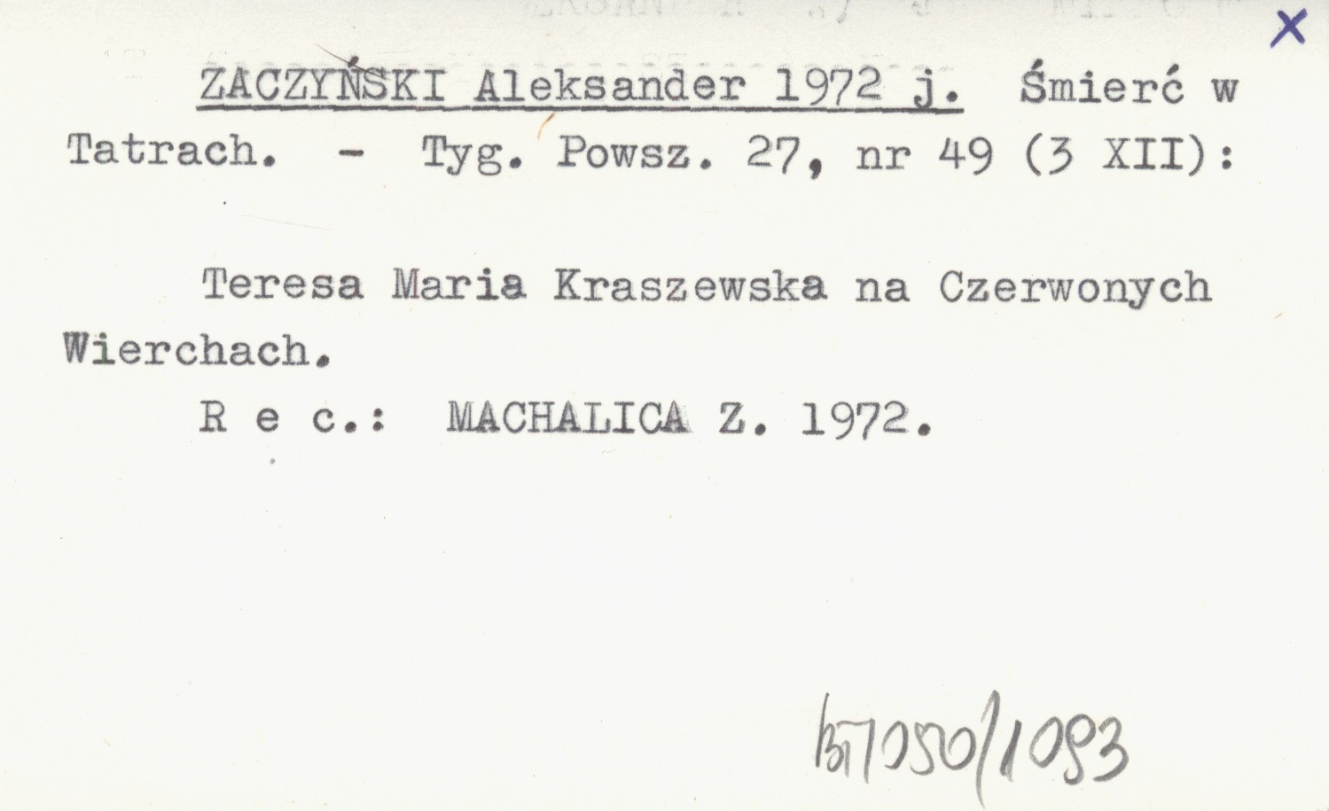 Tygodnik Powszechny, 27, nr 49 (3 XII). Teresa Maria Kraszewska na Czerwonych Wierchach. REC: MACHALICA Z. 1972.