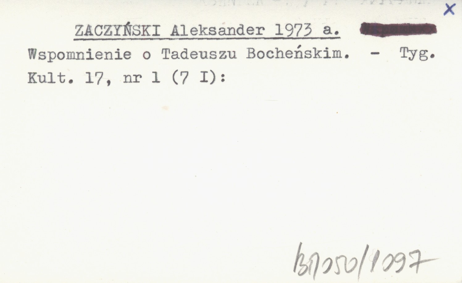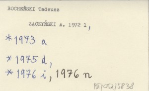 ZACZYŃSKI Aleksander 1973 a Wspomnienie o Tadeuszu Bocheńskim.