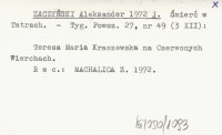 ZACZYŃSKI Aleksander 1972 k Wieczory kasprowiczowskie.