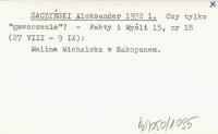 ZACZYŃSKI Aleksander 1972 i Uwaga, pijana wycieczka.