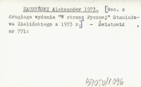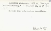 ZACZYŃSKI Aleksander 1973 b "Pamiętnik współczesny".