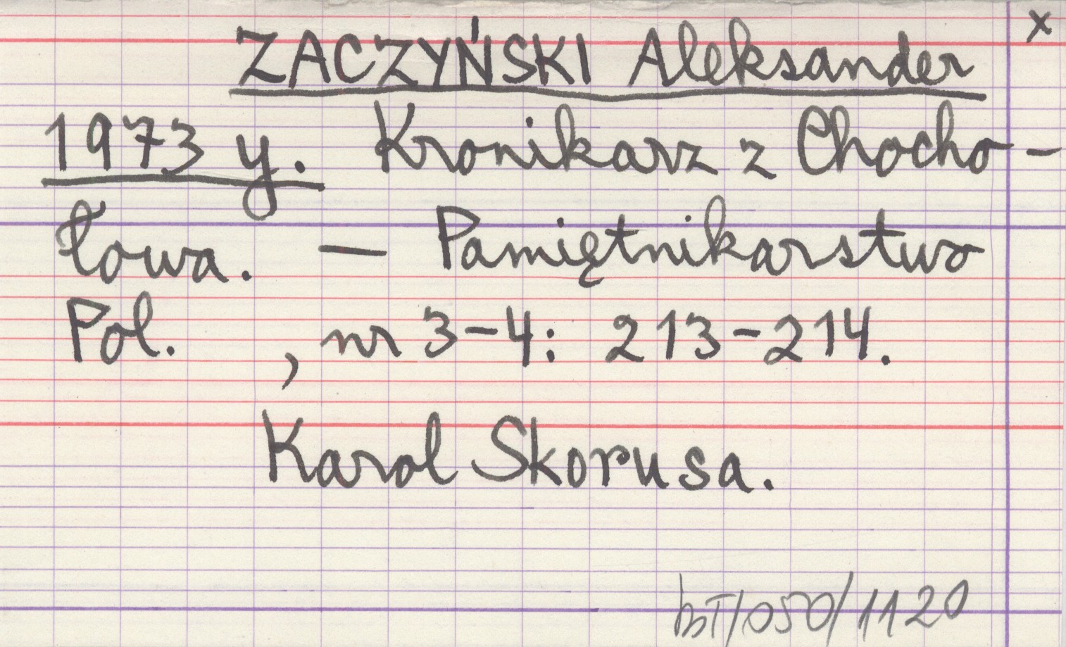 Pamiętnikarstwo Polskie, Nr 3-4: 213-214. Karol Skorusa.