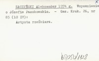 ZACZYŃSKI Aleksander 1974 g Wspomnienie o Józefie Paszkowskim.