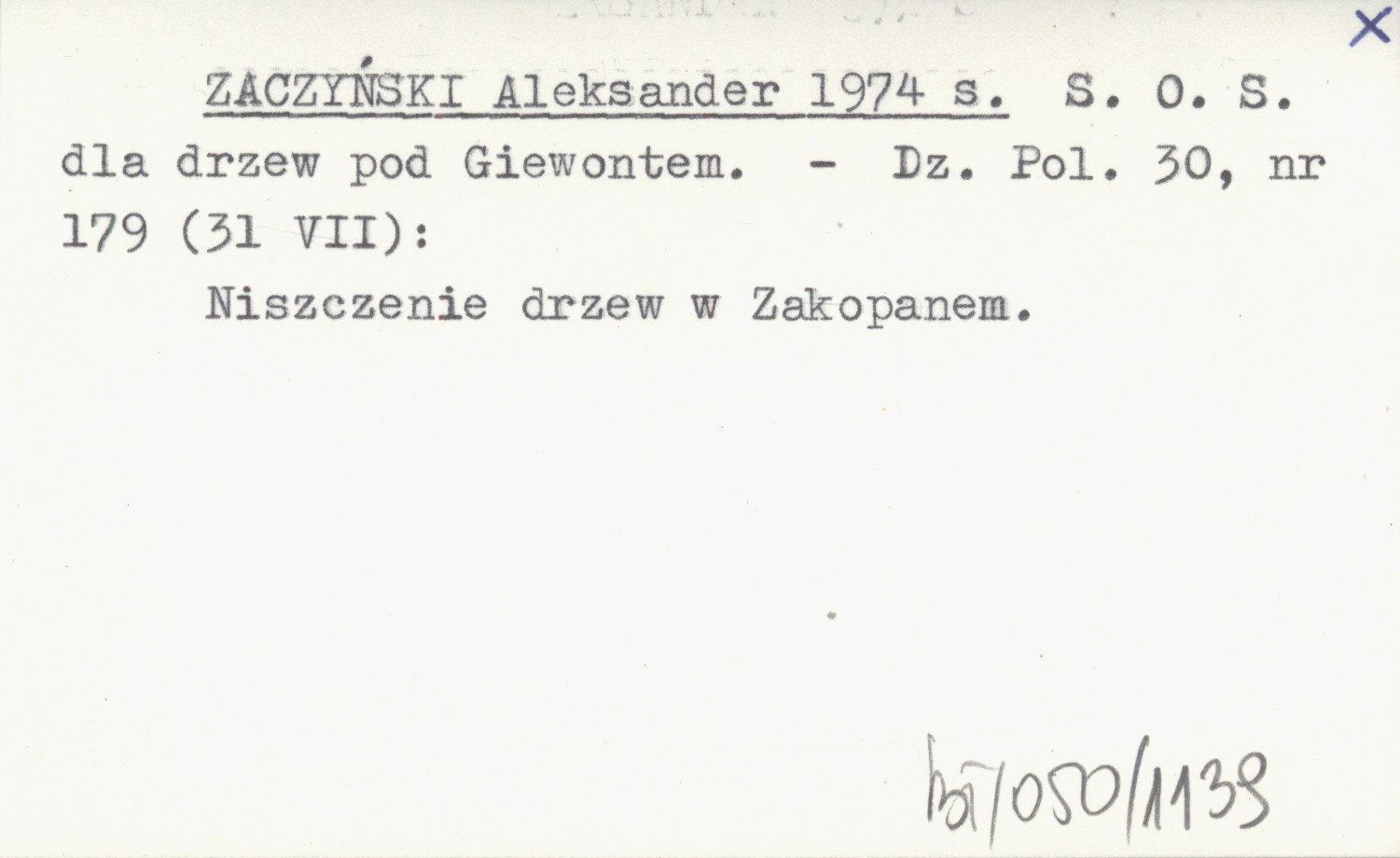 ZACZYŃSKI Aleksander 1974 s S. O. S. dla drzew pod Giewontem.