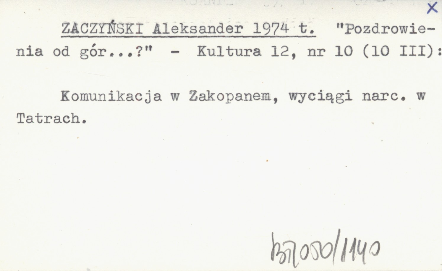 ZACZYŃSKI Aleksander 1974 t "Pozdrowienia od gór..."?