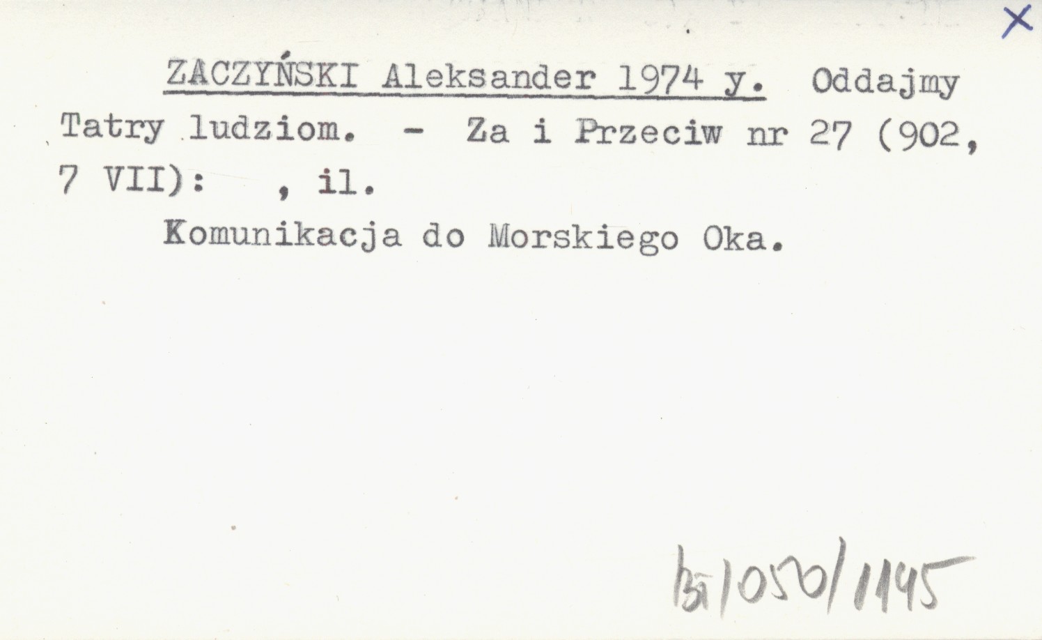 ZACZYŃSKI Aleksander 1974 y Oddajmy Tatry ludziom.