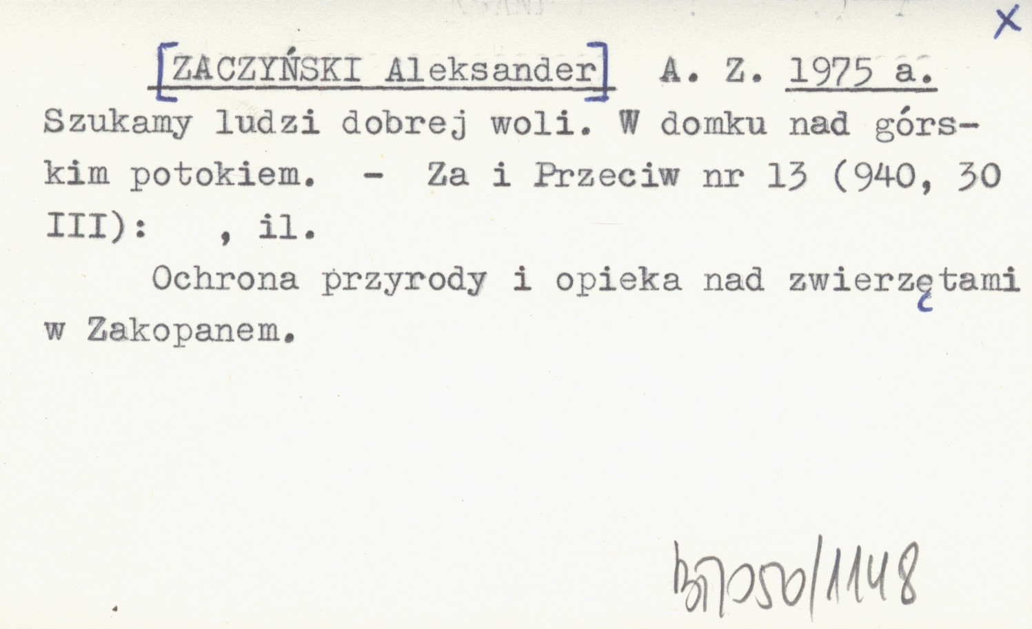 A. Z. [ZACZYŃSKI Aleksander] 1975 a Szukamy ludzi dobrej woli. W domku nad górskim potokiem.