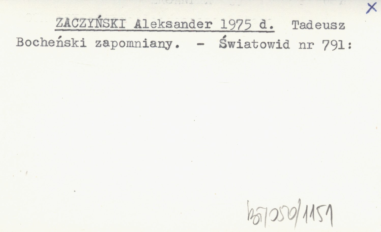 ZACZYŃSKI Aleksander 1975 d Tadeusz Bocheński zapomniany.