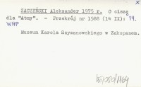 ZACZYŃSKI Aleksander 1975 r O ciszę dla "Atmy".